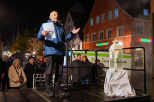 4.11. 2025„Es ist genau der richtige Ort“ – so ging es mir am Samstagabend durch den Kopf. Hier am Weinmarkt in Memmingen, neben dem Freiheitsbrunnen, in Sichtweite der Kramerzunft, in der 1525 mutige Bauern die Zwölf Artikel verfasst haben. Zwölf Artikel mit Forderungen nach Freiheit und Gerechtigkeit, die für alle Menschen gelten sollten. Begründet im Evangelium, wichtige Station auf dem Weg zu dem, was wir heute Menschenrechte nennen.