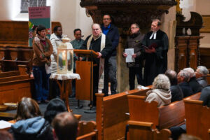 Und so war es sehr bewegend, wie sich im Anschluss viele Menschen noch in St. Martin zum Abendgebet versammelten. Beeindruckend waren dort die Statements, in denen Menschen das aussprachen, was sie in unseren Zeiten bedrängt. Beeindruckend war, wie das Bedrängende mit dem Psalm 121 in von sieben Menschen in sieben Sprachen vor Gott gebracht wurde. Beeindruckend war, wie die Mitfeierenden ihre Hoffnung zum Ausdruck gebracht haben und mit jedem Licht der Hoffnung den Bedrängnissen unserer Zeit etwas entgegensetzten.
